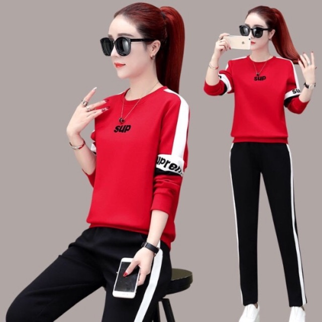 Baju t shirt perempuan palazzo baju tunggal set pakaian sukan wanita musim semi dan musim gugur gaya baru wanita longgar fesyen pakaian seluar dua helai .